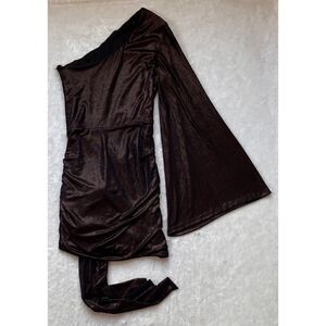 NWOT Zara Blogger’s Favorite Bronze Shiny Asymmetric Shimmer Mini Dress, Medium