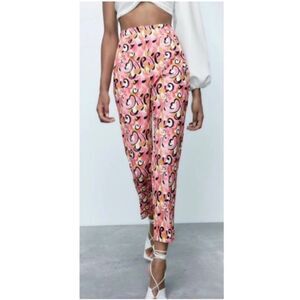 NWOT Zara Pink Paisley High Waisted Pleated Tapered Ankle Length Cropped Pants