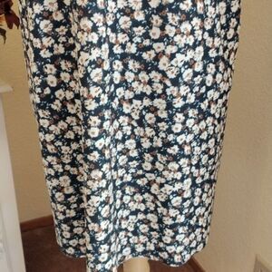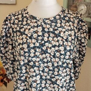 NEW Retro floral. Puffy sleeves. Pull over and go. Raw edge, curved hem. Size L measures 44 at chest, 46 at waist, 48 at hips. 35-37 long from shoulder to hem. So comfortable and easy. You'll love this, and it is NEW.