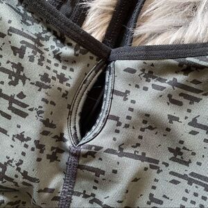 NWOT c9 Champion sport bra with pad inserts. Green and black print. Keyhole detail in front, racer back style in back. Mesh panels for breathability.