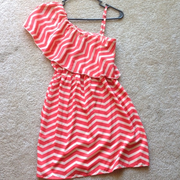 Reddish-orange and creme chevron printed summer dress. Worn once to a wedding. No flaws!