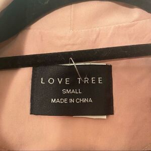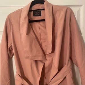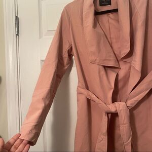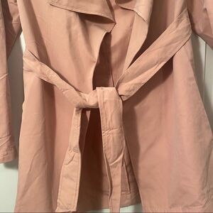 NWOT love tree pink small nylon blend open light coat with tie around the waist