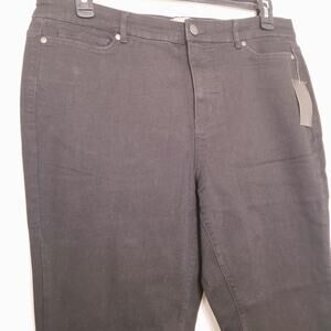 Motto Women's Black High Rise Skinny Stretch Jeans 5 Pockets - Size 16W (36); Material - 81% Cotton, 17% Polyester, 2% Spandex; Machine Wash Gentle; Made in Cambodia; Belt Loops, Button & Zipper Closure, High rise, Skinny Leg, Stretch,