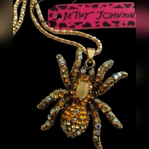 NWR Betsey Johnson Gold Spider Pendant Necklace 24" CHAIN
