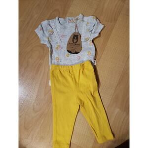 NWT 0/3m 2pc Outfit Rabbit+Bear Spring Floral Yellow Pants