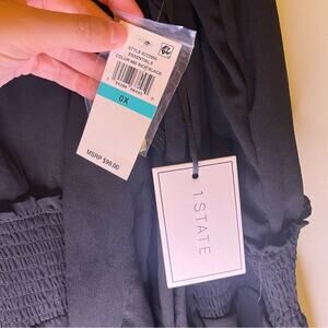 NWT 1. State Black Cold Shoulder Ruffle Sleeve Mini Dress Tiered SZ 0X Modest