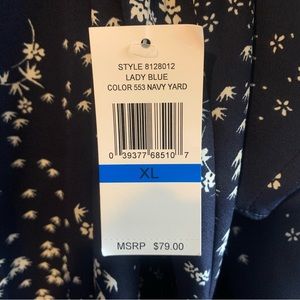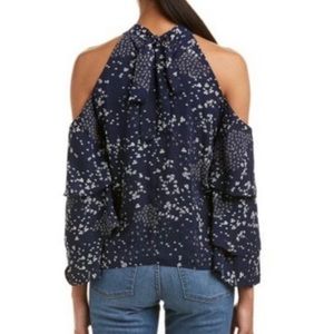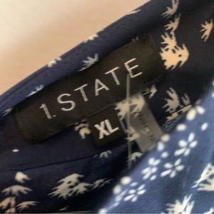 NWT 1. State Blue and White Floral Cold Shoulder High Neck Tiered Blouse XL