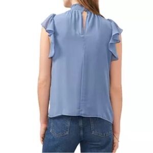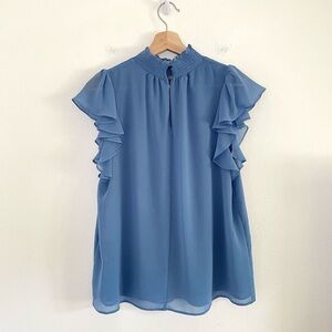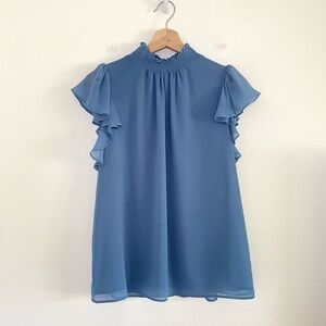 NWT 1. State Flutter Sleeve Smocked Mock Neck Blouse Storm Blue Large