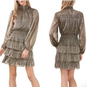 NWT 1. State Metallic Long Sleeve Smocked Waist Tiered Mini Dress Sz. 3X