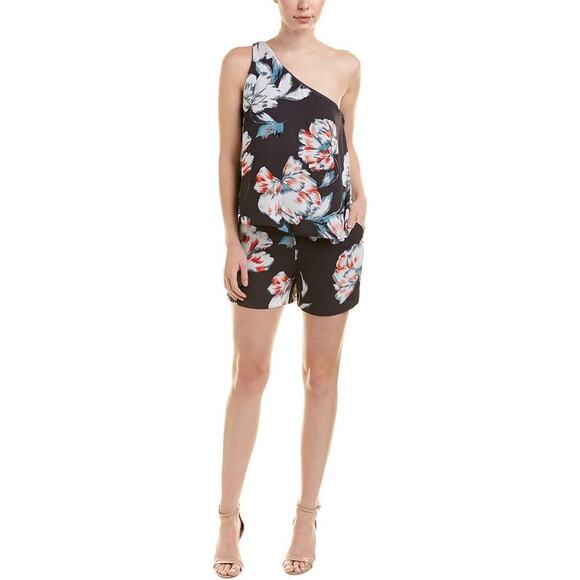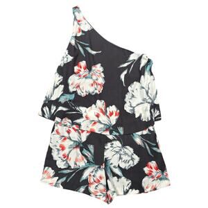 NWT 1. State One Shoulder Popover Romper Size 12 Ebony Tropical Floral