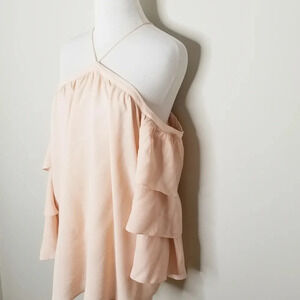 New with Tags 1. State The Artist romantic blush pink off shoulder blouse with tiered ruffle sleeves. Keyhole back button closure.