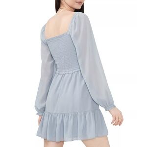 NWT 1. State Smocked Ruffle Hem Long Sleeve Mini Dress in Dusty Blue