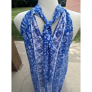 NWT 1. State Women's Blue/White Maxi Halter Dress Size S Measurements in descrip