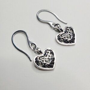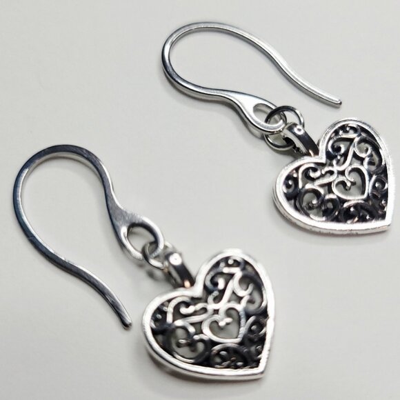 NWT (10 Available) Stainless Steel French Hook Filigree Heart Charm Earrings