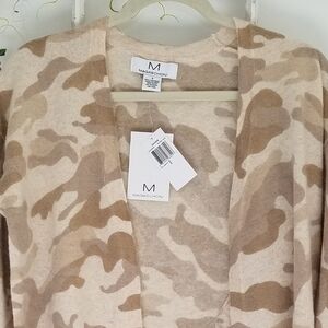 NWT 100% Cashmere Magaschoni Long Line Open Cardigan Size Small Camouflage