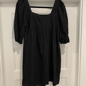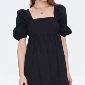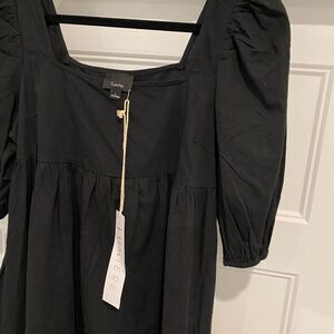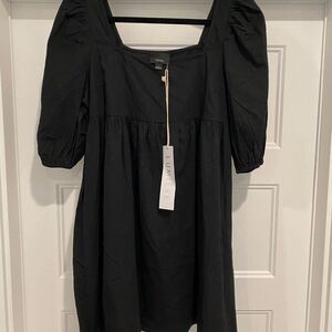 NWT 100% Cotton Lumiere Black Square Neck Puff Sleeve Mini Baby Doll Dress โ Size Large