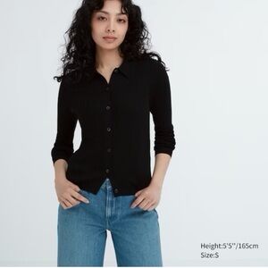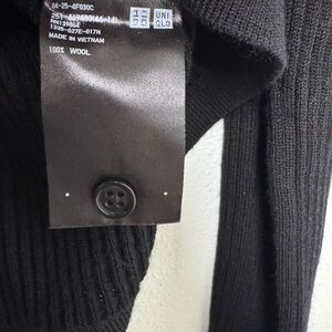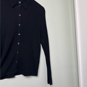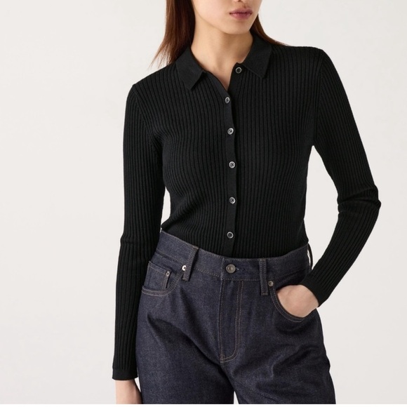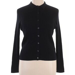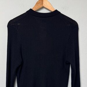 NWT 100% Extra Fine Merino Wool Ribbed Long Sleeve Polo Cardigan Sweater Top Black XL