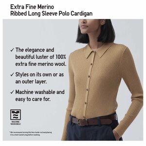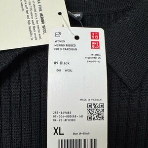 NWT 100% Extra Fine Merino Wool Ribbed Long Sleeve Polo Cardigan Black XL