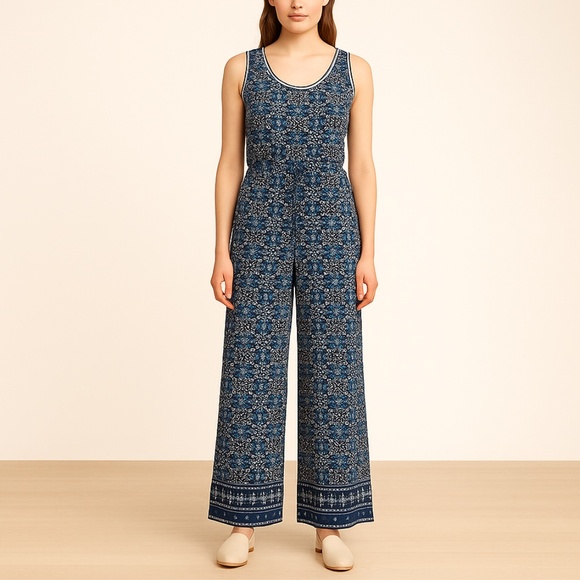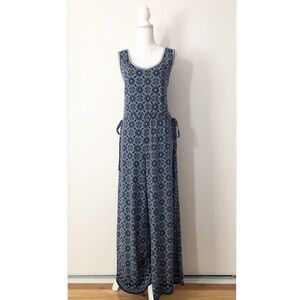 NWT $100 Max Studio Culotte Jumpsuit Size M Navy Blue Floral Side Tie Sleeveless
