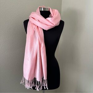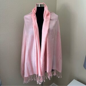 NWT 100% Pashmina Wrap Pink Satin Paisley Floral Fringe Scarf