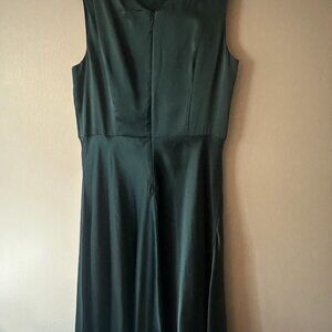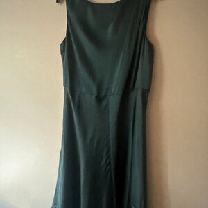 Brand new with tags — elegant sleeveless dress made from 100% silk crepe in a rich emerald green hue. Fully lined for a smooth, comfortable fit. Features a softly draped neckline and flattering fit-and-flare silhouette that moves beautifully. A timeless, sophisticated piece perfect for weddings, cocktail parties, or special occasions.