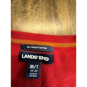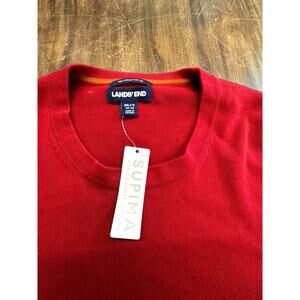 This Lands' End sweater is a must-have for any man's wardrobe. The comfortable and cozy pullover style is perfect for chilly days, and the vibrant red color adds a pop of personality to any outfit. The sweater is made from 100% Supima cotton, ensuring quality and durability that will last for years to come. The size is a regular fit for men in size M, with a crew neck and long sleeves. It's perfect for casual wear or dressing up for a night out. Don't miss out on adding this stylish and versatile sweater to your closet.