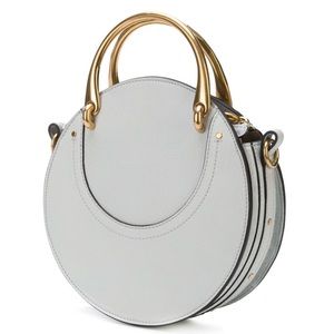 NWT 100% authentic Chloe Pixie Small Round Double-Handle Tote Bag. Color: Airy Gray (light blue/gray). Comes with original tags attached and dust bag. Purchased from Neiman Marcus. Brand new and in perfect condition! No longer sold in stores or online! No trades, no external sites, but I 10% discounts on bundles of 3+ items. Feel free to ask questions or make an offer!