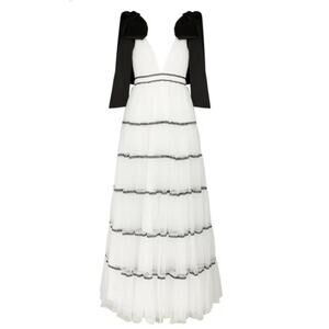 NWT $1000 ALICE AND OLIVIA Jessalynn Bow Strap Tiered Maxi Gown White Sz 2 XS