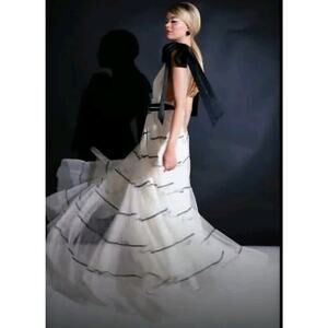 NWT $1000 ALICE AND OLIVIAJessalynn Bow Strap Tiered Maxi Gown White Sz 2 XS