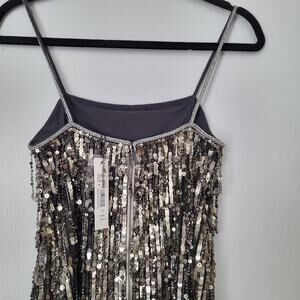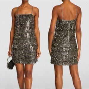 NWT $1000 Alice + Olivia Chicago Sequin Fringe Mini Dress Gunmetal Silver Sz 0