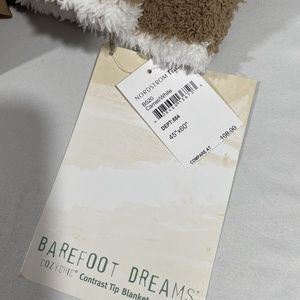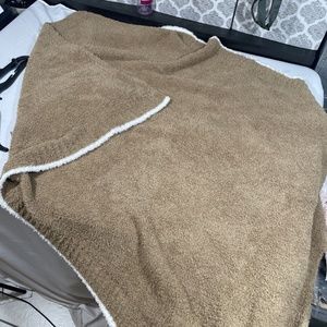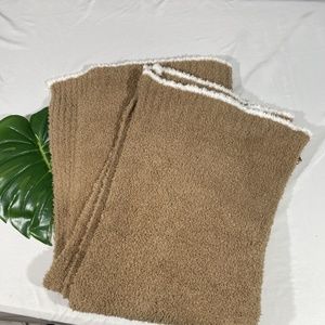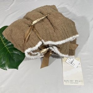 NWT $108 Barefoot Dreams CozyChic Rib Trim Throw [45" x 60"] Camel White