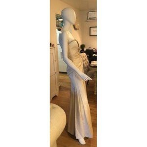 Gorgeous Temperley London silk / satin wedding dress. New with tags from, but was purported to be featured on the runway. It's a sample and I'm not sure it was ever put into production, as I cannot find the stock photo or any reference to this gown. The beading with embroidered fabric, crystals, and pearls on the bodice is stunning. Truly one of a kind gown. Absolutely feminine and regal. The fabric texture is amazing. Very high-end. Side zip with boning throughout bodice. Fully lined. In US size 4 UK size 8. Estimated to retail around $10k. Price reflects condition. Please refer to pictures for condition, as this was a runway item. You will not find another deal like this. Absolutely stunning gown. Sample item, no fabric content listed but would appear to be silk. Measurements lying flat measuring straight across: Bust 14 3/4", Waist 12.5", Hips 16", Length from top to front hem 53"; Length to back hem (slightly longer) 55".