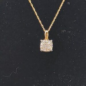 NWT 10K Yellow Gold Square Diamond Pendant Necklace 1/10 CT TW With Chain
