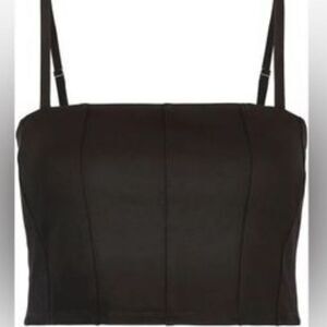 fabric, it's super comfortable. Pullover style. Adjustable spaghetti straps. Square neck. Built-in shelf bra. Contoured seam details. Cropped length.