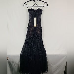 NWT $1100 PATBO Gossamer Corset Maxi Dress Black Sz 2 STUNNING!!!