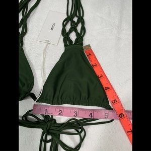 NWT $112 MIKOH Venezuela Crochet Fringe Bikini Top in Jungle Green [SZ XS ] K913