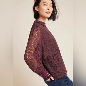 NWT $118 Bl-nk Savannah Lace Top Anthropologie Leather Beaded Fringe Shirt Small