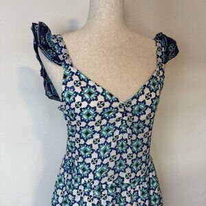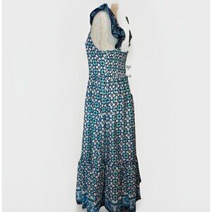 NWT $118 Lucky Brand Maxi Dress XS Blue White Turquoise Sleeveless Ruffle Boho