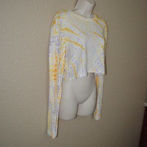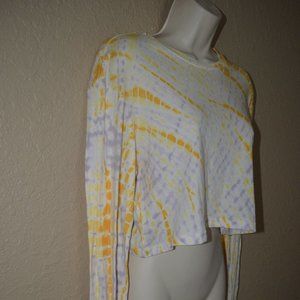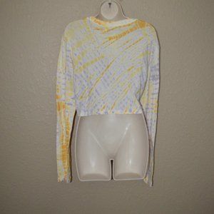NWT $118 Sz XS SPRWMN Yellow Tie Dye Long Sleeve Cropped T-Shirt