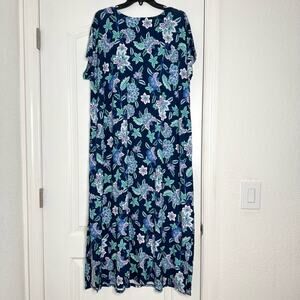 NWT $119 J. Jill Split-Neck Floral Blue Maxi Dress Women’s XL
