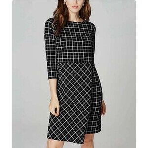 NWT $119 J. Jill Wearever Collection Faux Wrap Dress Black Plaid Women Size LP