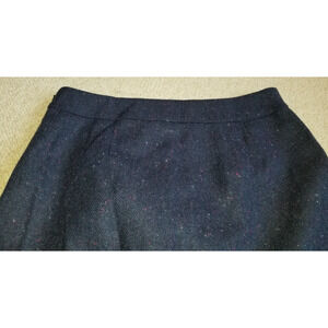 NWT $119 Women's Skirt-TALBOTS-Lovely women's navy blue speckled wool blend 'Donegal' faux wrap skirt with ruffled trim. Skirt has a flat front, no beltloops, side zipper, hook and eye closures, no pockets, and is lined. (Shell): 48% Wool, 27% Polyester, 25% Viscose (Lining): 100% Polyester. Marked Size: 8P (Waist= 30 inches, Length= 20 1/2 inches). Excellent condition. Non-smoking home. Thanks for looking!