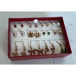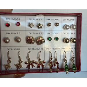 NWT 12 Days of Christmas Studs/Hooks Pierced Earrings Avon Tree Candy Cane Star