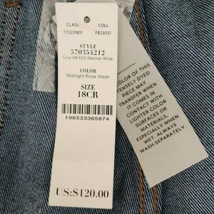 NWT $120 WHBM Women's High Rise Mariner Wide Jeans Curvy Blue Size 18CR