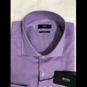 NWT $125 BOSS Hugo Boss Miles Sharp Fit Check Shirt in Purple [SZ 16.5 ]