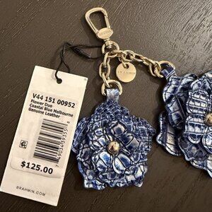 NWT $125 BRAHMIN FLOWER DUO COASTAL BLUE Leather Charm Key Fob