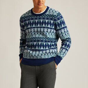 BONOBOS Wool Blend Game Cards Poker Night Casino Blue Crew Neck Sweater