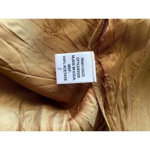 Twelfth Street by Cynthia Vincent brand Sparkle Skirt Gold bought at Sophea Parros in early 2000's and never worn. This skirt is 100% acetate and has a reflective sheen to it and has some green undertones in some light. Along the bottom are little gold faceted rhinestone type gold metal pieces in floral pattern. See pics for measurements. The only problem with this skirt is at base of zipper stitching has come undone. Also see pics. A very easy fix if you have a sewing machine (i do not)... or a seamstress (i do not).