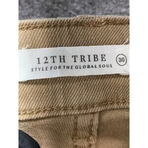 The NWT 12th Tribe Tan White Western High Waist Cotton Straight Jeans in size 30 are stylish and versatile women's jeans. Made of comfortable cotton material, these jeans feature a straight leg style that is flattering and on-trend. The tan and white color combination adds a touch of sophistication to the classic high waist design. Perfect for everyday wear or dressed up for a night out, these jeans are a great addition to any wardrobe.