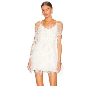 NWT $1300 Cult Gaia Zariah white Feather Dress Sz XS NEW Bridal Wedding Party